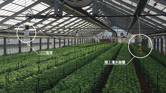 ▼LEDの設置位置と頭上灌水装置の正しい設置位置